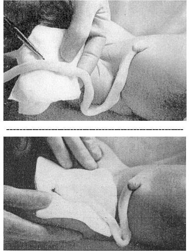 When pulsations of the umbilical arteries cease the umbilical cord collapses, Then the cord can be cut without any bleeding. From Montgomery (1960, 1962) |